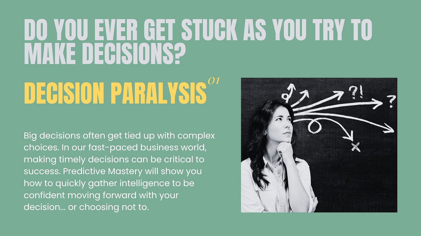 As a result of my curiosity and a decade or so of research, I've recently launched a new project called Predictive Mastery. This program delves into the art and science of decision-making, where we peel back the layers of how we make decisions, what role our brains play, and how we can use this knowledge to be more confident in the future.